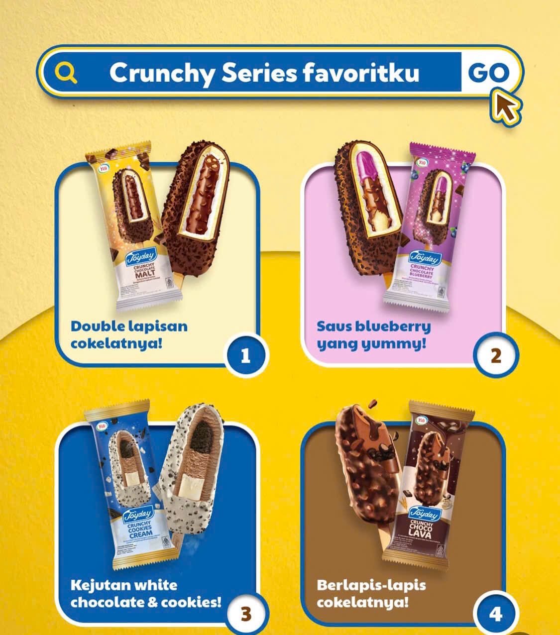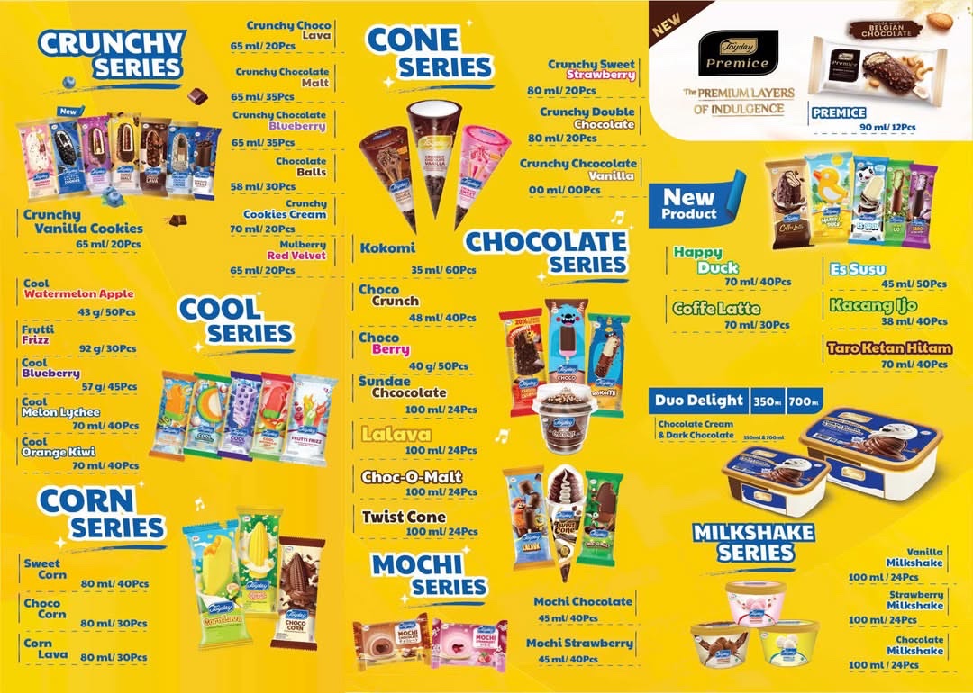 Từ việc tìm kiếm những đối tác uy tín tại Indonesia, Happy Cool đã trở thành nhà phân phối chính thức của kem Joyday – thương hiệu kem nổi tiếng với hơn 20 hương vị độc đáo, được sản xuất theo tiêu chuẩn quốc tế. Mỗi cây kem Joyday là sự kết hợp giữa nguyên liệu tự nhiên, công nghệ hiện đại, và cảm hứng từ trái cây nhiệt đới.
