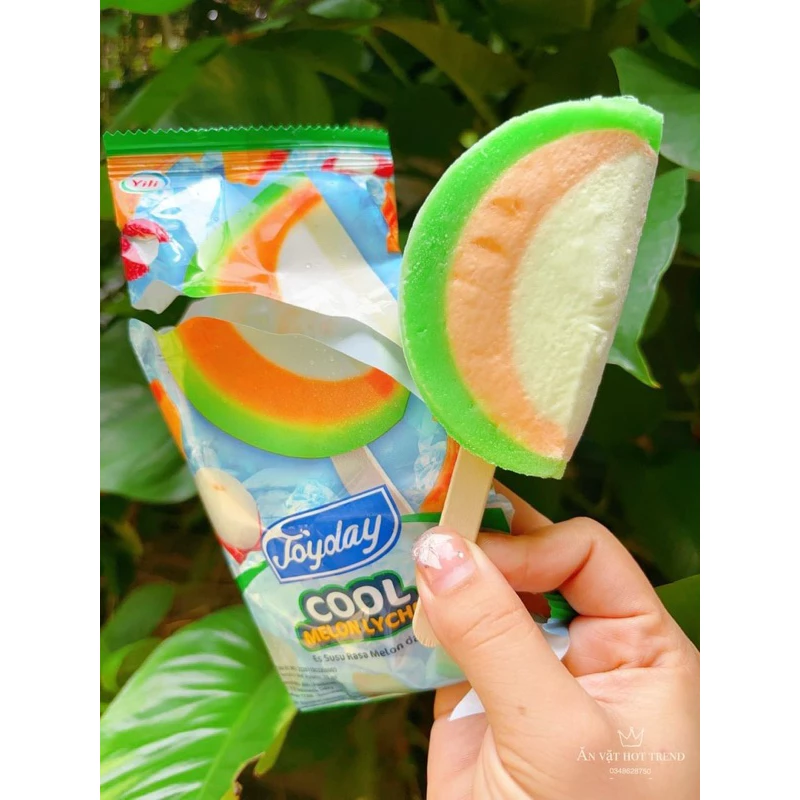 “Thổi bừng vị giác trong những ngày oi ả với Kem Joyday Vải Dưa Lưới Mát Lạnh – món kem que mang hương vị trái cây nhiệt đới đầy sảng khoái.”